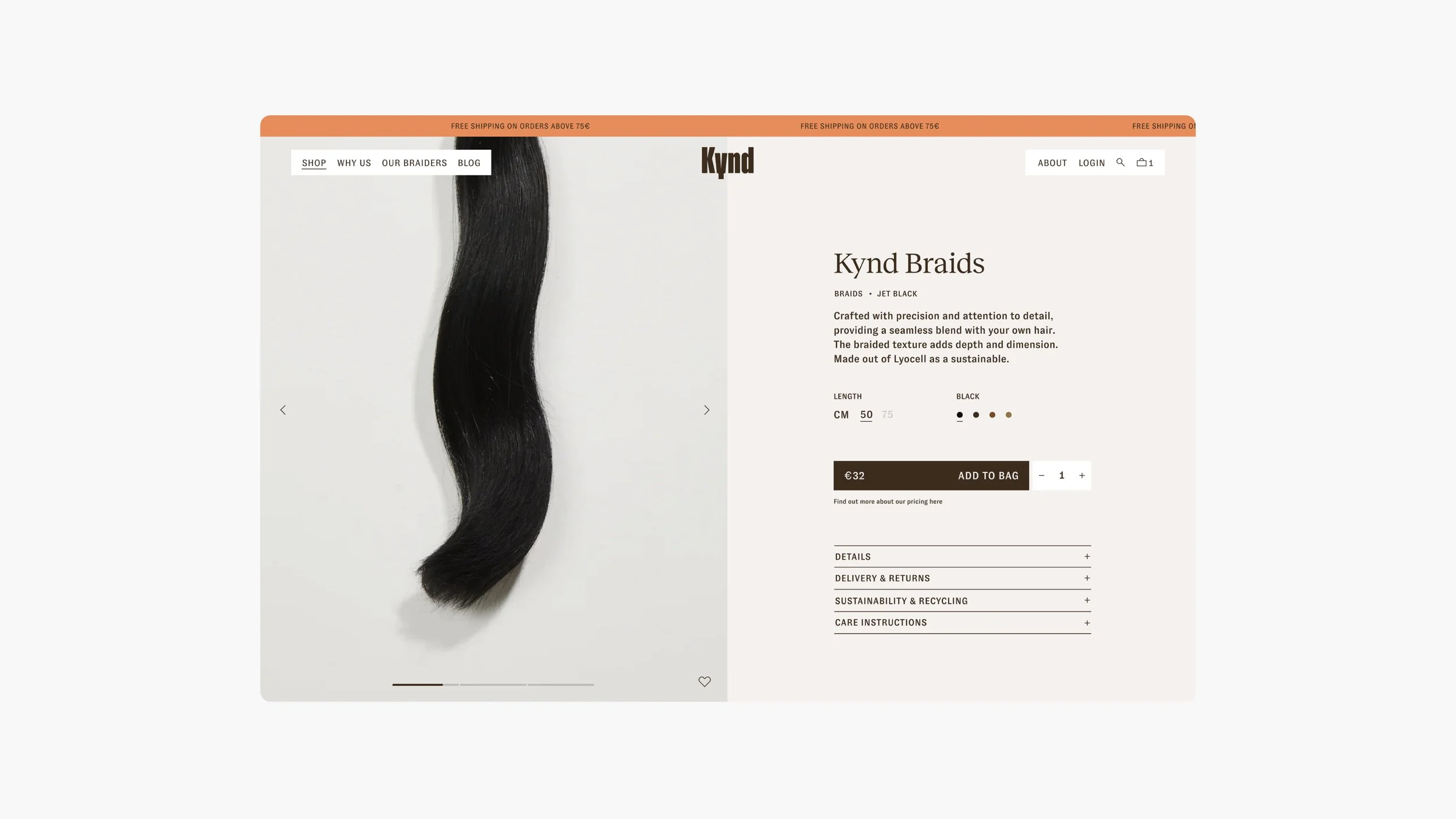 Creative direction and branding for Berlin based hair extensions brand Kynd Hair. A revolutionary approach to hair extensions for skin of colour which, through natural ingredients and sustainable processes, delivers a fully non-toxic, plant-based and biodegradable product for the community. Kynd Hair aims to change the industry in the years to come advocating for a safer and responsible market.