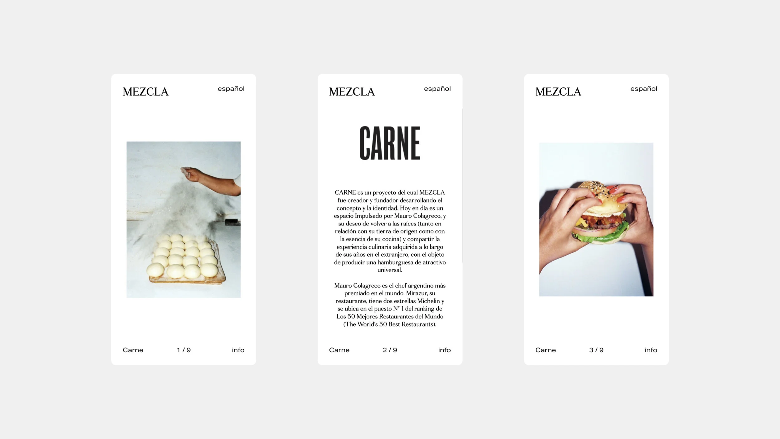 With a growing portfolio of gastronomic spaces, the group needed an overarching brand. ‘Mezcla’—‘mixture’ in Spanish—describes the core creative network of the group. The reduced identity shows subtle typographic references to Argentinian architecture.