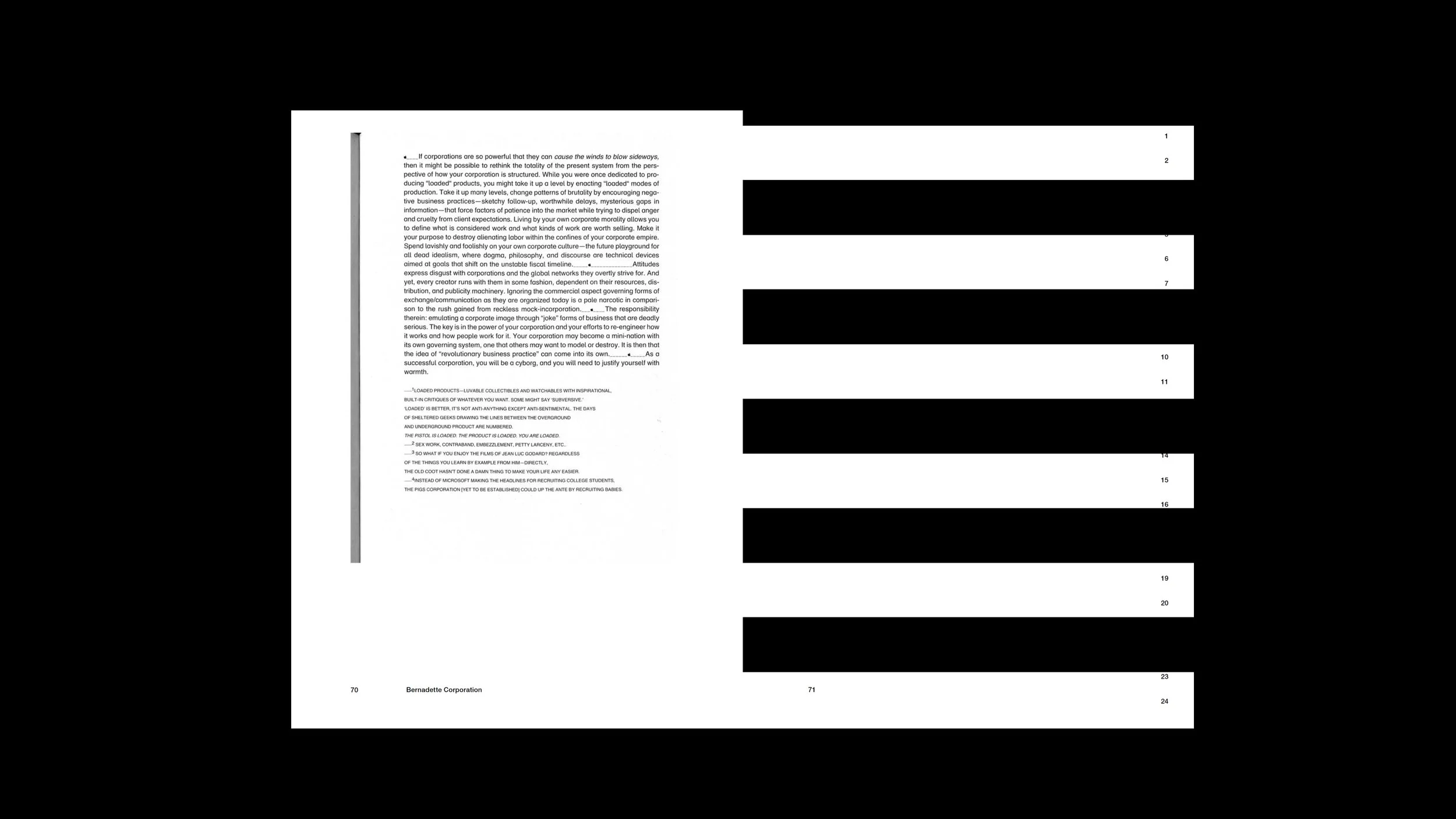 Editorial design for RULE C, a limited-edition publication that began as a working tool. The final book was printed in 50 copies, documenting a site-specific series of talks, screenings, exhibitions, and performances from 2015 that brought together a spontaneous community of friends, artists, thinkers, and cultural producers.