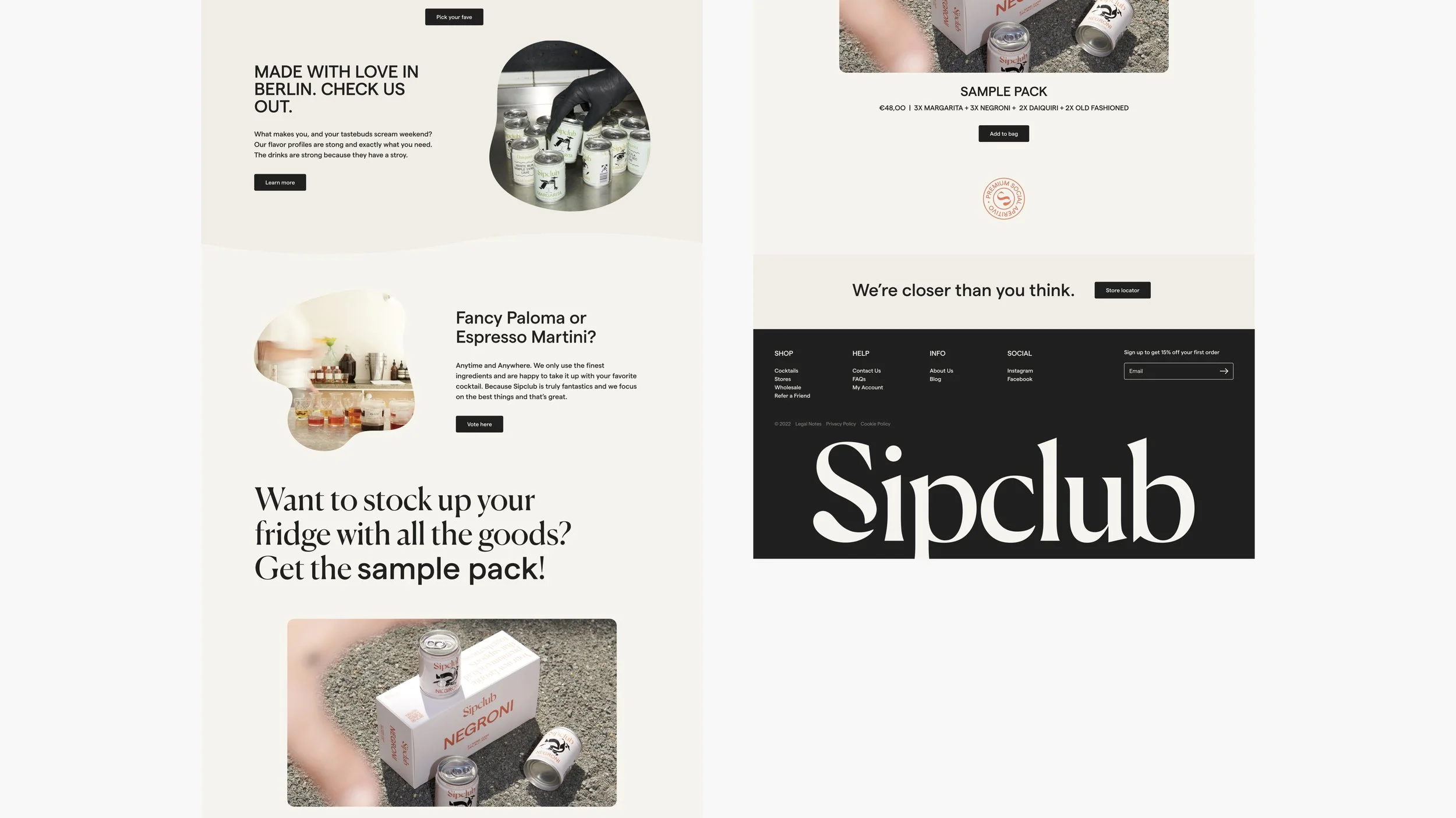 Creative direction and branding for Berlin based cocktail brand Sipclub, offering top-notch quality drinks inspired by classics and adapted for modern times. The brand focuses on the idea of the ‘social aperitivo’ and translates this into a light-hearted visual language characterised by fluid illustrations, funky colours and a persuasive personality.